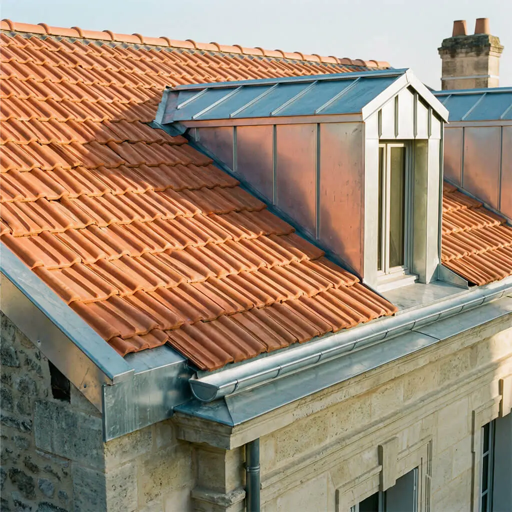 Gouttières, chéneaux et éléments zinc assurent l’évacuation des eaux pluviales. Nous intervenons pour la rénovation et la réparation de zinguerie sur tous types de toitures.